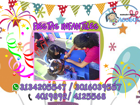 Hacemos las mejores fiestas infantiles con recreadores y recreacionistas expertos chiquitecas, bailes muñecos y saltarines solicita nuestros servicios tenemos los mejores planes para ti 3134205547 / 3016039557 4019892/ 4125568 http://www.agugueventos.com/index.html